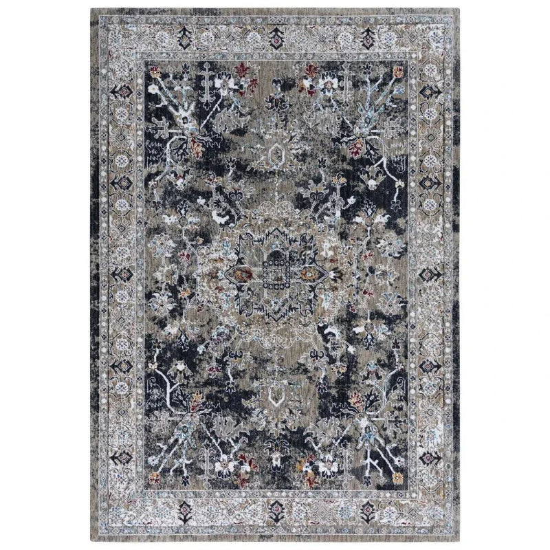 Captivating rich colors of charcoal, burgundy, blue and gold are masked by the distressed look of neutral ivory, grey and beige; giving this Sanction Rug a hint of a fine vintage heirloom. A perfect addition to your other traditional or vintage style home décor. Power-loomed from 100-percent recycled polyester, this rug will withstand years of service and be easy to clean. Combining the modern technology of a power loom, with age old hand finishing techniques, makes this Hybrid rug an amazing value for such exceptional quality. The use of recycled Polyester adds to the environmentally friendly nature found in hand made rugs. Each piece is hand washed to add softness and a rich patina. Additionally, each piece is then hand sheared and had surged as fine rugs have been made for centuries.