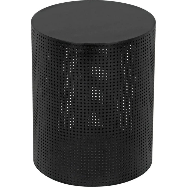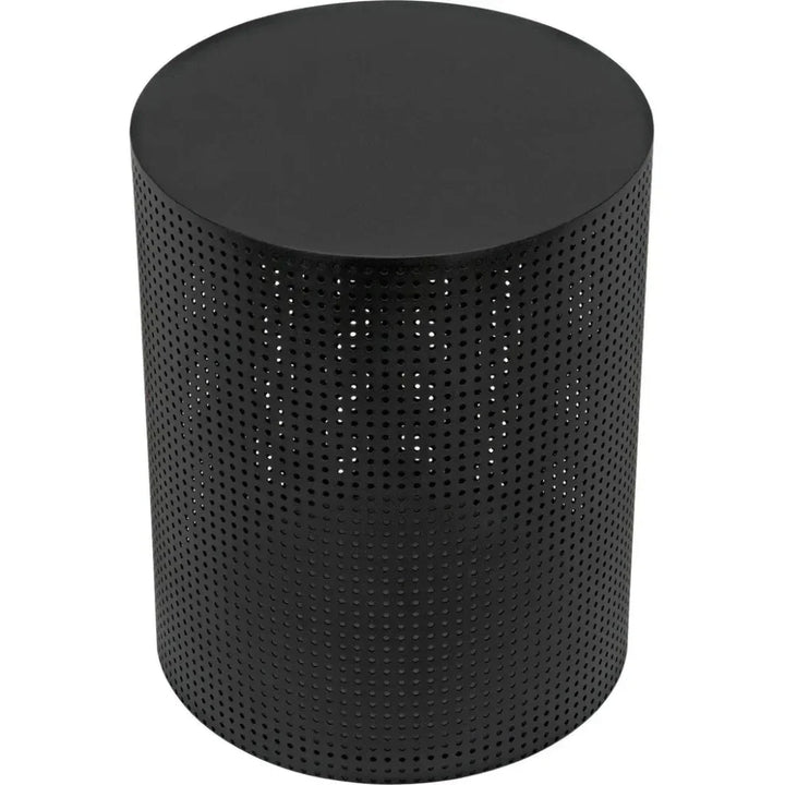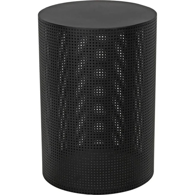The Dixon Black Steel Round Side Table, available in small and large sizes, blends contemporary simplicity with refined design through its perforated industrial steel cylinder form. Choose between a matte black or warm antiqued brass finish to suit your space. Sturdy and versatile, this accent table enhances any interior with its understated elegance and reliable functionality, making it a stylish addition to both modern and transitional settings.