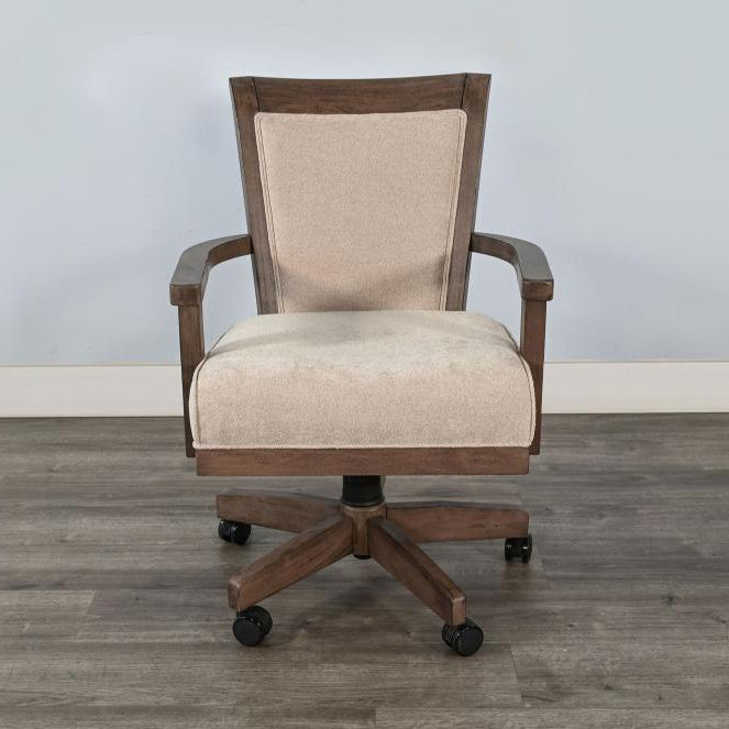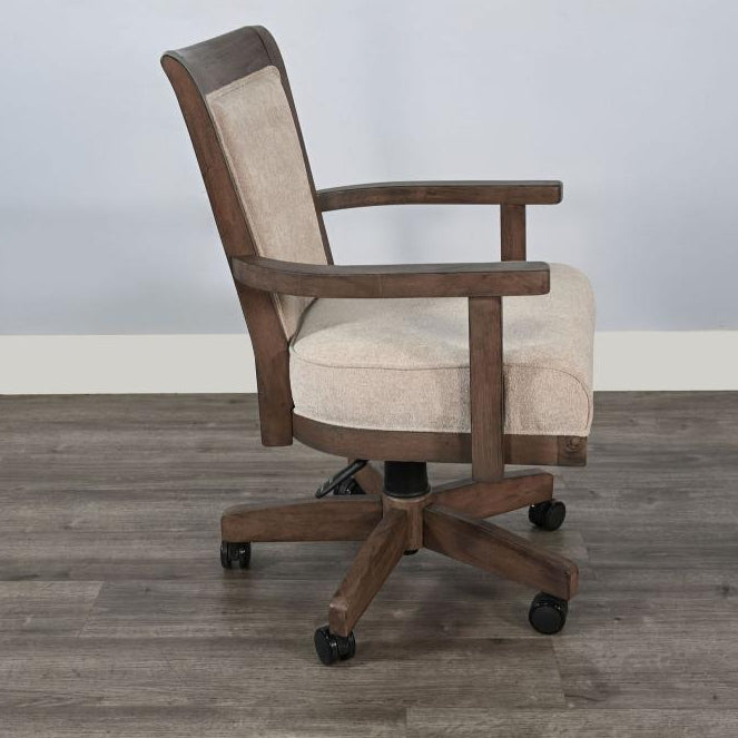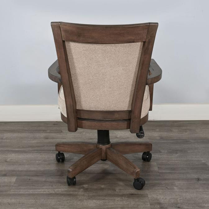 Made from durable rough-sawn mahogany solids and veneers, the Doe Valley Game Chair with Casters combines strength and style. With its traditional design, this chair features a five-star base with casters for easy movement. The chair is upholstered in a soft beige fabric that adds a touch of elegance to any room. It offers a tilt and lift function, allowing you to adjust the seat from 20 to 24 inches high, ensuring maximum comfort for long gaming or leisure sessions. Enhance your space with this adaptable chair that brings both functionality and comfort to your home.