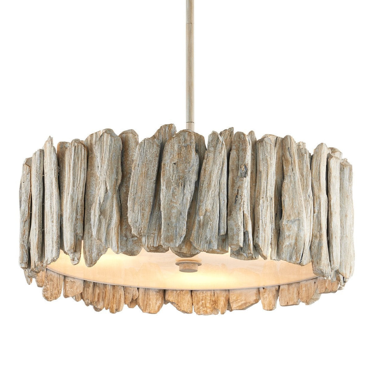 The Driftwood Whitewash Semi-Flush Mount is crafted from hand-selected pieces of natural driftwood in a whitewashed finish that are placed artfully onto a round frame. An acrylic diffuser and the sugar white finish on the wrought iron stem draw out the pale gray tones in the wood. The three-light fixture is a perfect choice for any home with a coastal or lakeside aesthetic. The Driftwood is dimmable to create softer moods at twilight or during the long winter evenings.