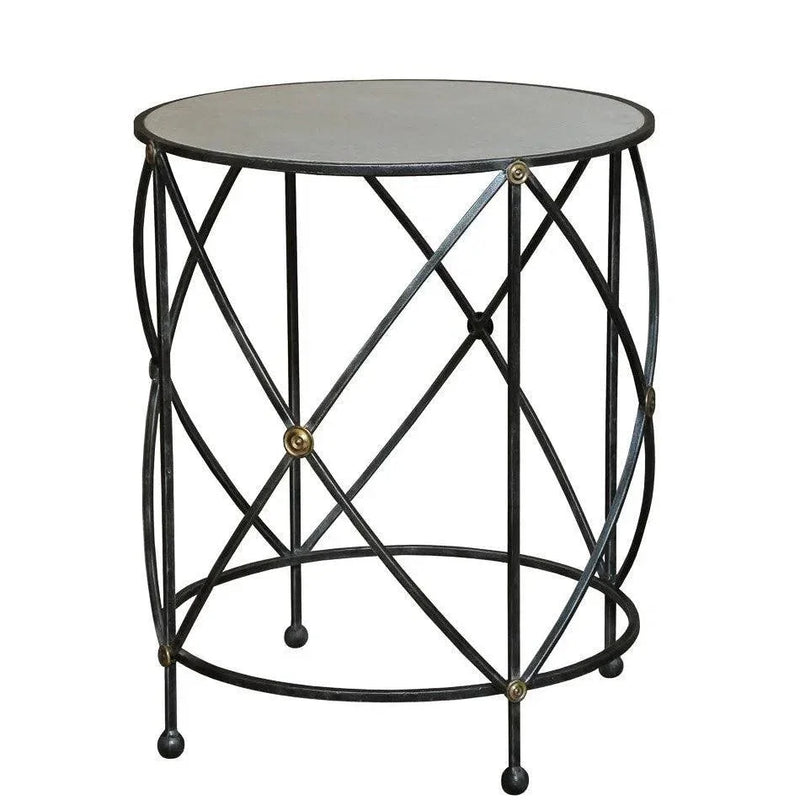Inspire your space with the industrial and vintage charm of Drum & Fife Lamp Table Side Table Marble Top. Its aged white marble top exudes elegance, while the circular open metal base adds a striking visual appeal. The blackened iron finish completes the antique feel, making this table a unique spot for lamps, snacks, and more. Drum & Fife Lamp Table Side Table Marble Top offers a fusion of industrial edge and vintage refinement, adding an artistic touch beside sofas or beds.