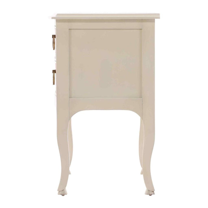 The Duchess Chest brings timeless elegance to any room with its exquisite design and eco-friendly craftsmanship. Made from sustainably grown mahogany, this chest features a lovely hand-painted cream finish that adds a soft touch while showcasing the wood's natural beauty. The front boasts intricate rafia detailing for added texture, complemented by polished brass hardware that offers a modern twist. With two spacious drawers, it provides ample storage for your essentials. This piece is perfect for bedrooms, living rooms, or hallways, making it a versatile and stylish addition to your home. Elevate your decor with the Duchess Chest's blend of style and sustainability.