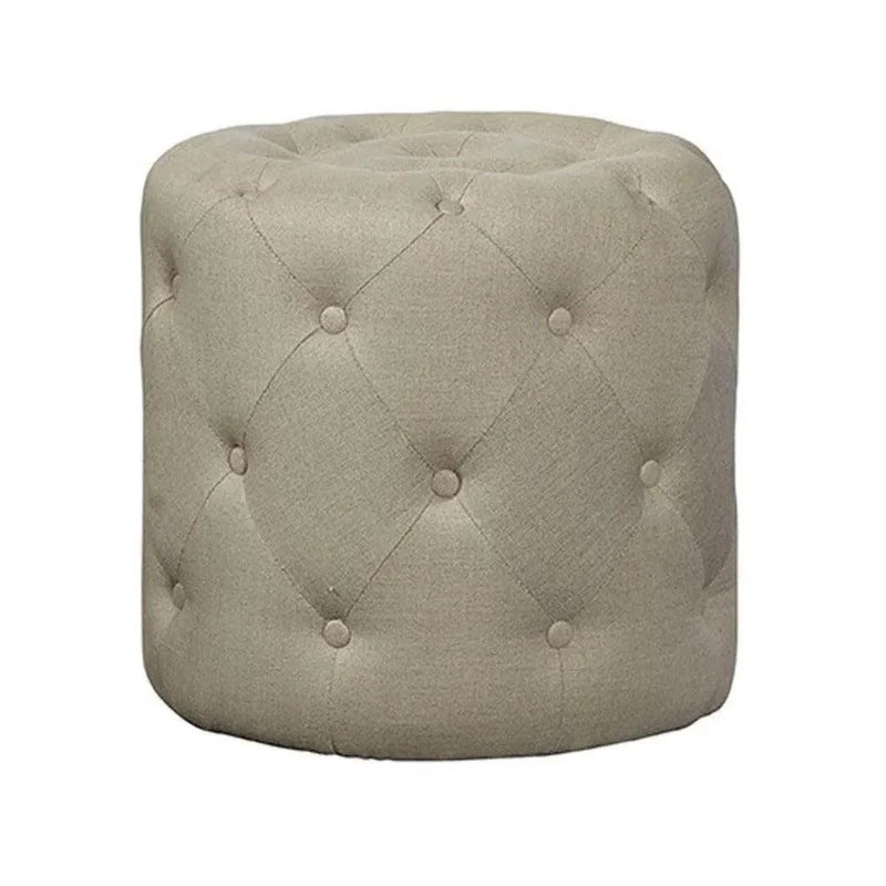 Spice up your living space with our multipurpose Dumplin' Stool. Upholstered in neutral taupe linen with button tufting, this bold pouf adds comfort and style to any room. It can be used as a footrest, side table, or distinctive accent piece. Add some Southern charm to your home with this one-of-a-kind pouf, named after a beloved delicacy. Upholstered in neutral taupe linen with button tufting, this versatile piece is perfect in pairs under a console, as a handy tableside addition, or for resting your feet after a long day.