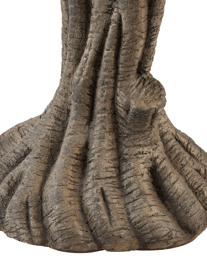 This accent table brings a touch of the outdoors inside with its natural tree trunk design. Made with a combination of concrete and wrought iron, it offers both beauty and strength. The brown color and rugged finish give it a rustic charm, making it a perfect addition to any living room or entryway. The detailed grooves in the wood texture add an artistic flair, ensuring it stands out as a decorative piece in your home.