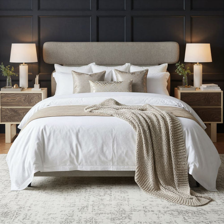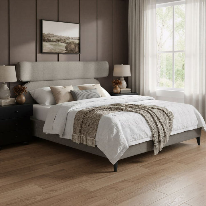 Enhance your bedroom with the Dusa King-Queen Bed in Olive Brown. This modern-style bed is crafted from high-quality materials like polyester fabric, rubberwood, MDF, plywood, and polypropylene. The bed offers a perfect blend of style and function, making it a great fit for any modern home. Its chic look and practicality make it a standout piece in any bedroom. The rich olive brown color adds a touch of elegance, while the sturdy construction ensures durability. With easy assembly, this bed combines convenience with contemporary design, offering a comfortable and stylish sleeping experience.