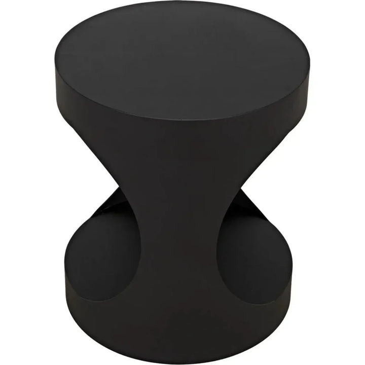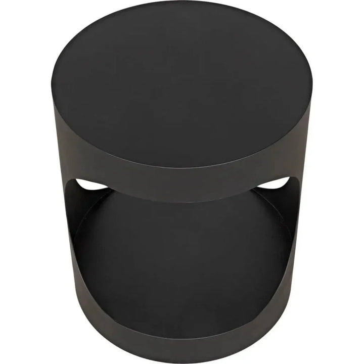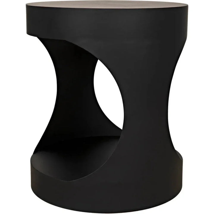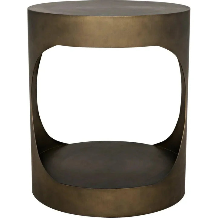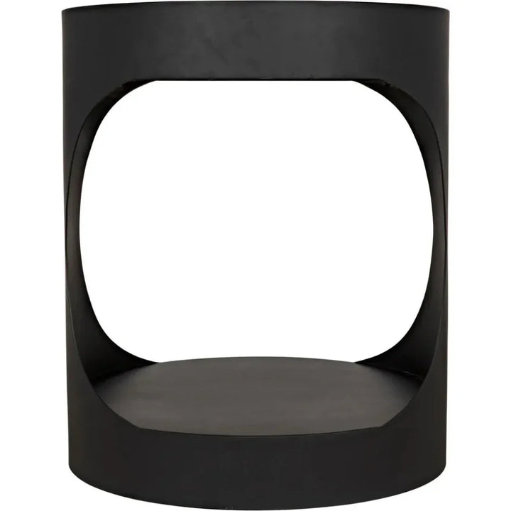 The Eclipse Round Side Table combines modern sophistication with functional design, offering a bold and versatile piece for contemporary interiors. Crafted from durable metal, this cylindrical drum table features round cut-outs on two sides that create a unique pass-through and a convenient lower shelf for additional storage. The Aged Brass version enhances the modern silhouette with a refined metallic finish, while the Black Steel variant brings a more industrial, edgy appeal through its matte black surface. Both variations provide sturdy support and a distinctive look, making them perfect accents for any modern setting.