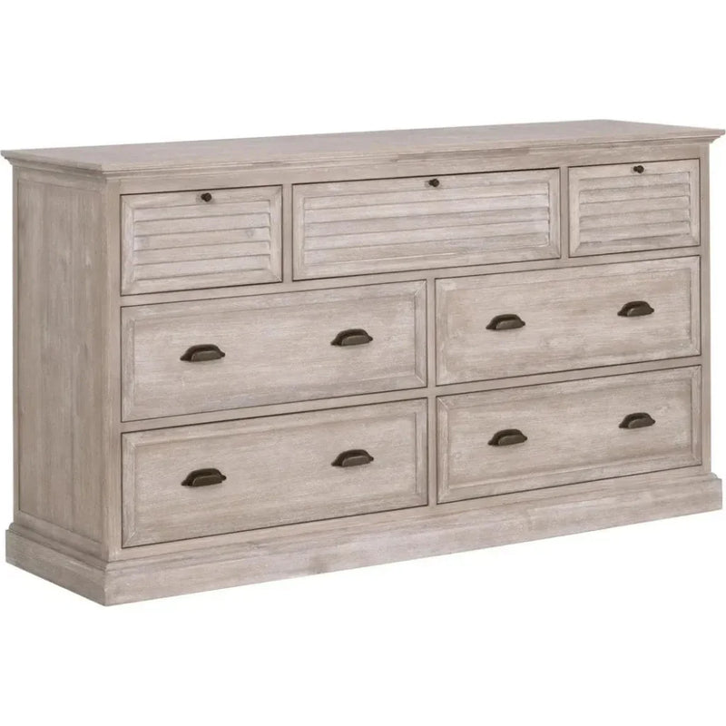 Eden 7-Drawer Media Dresser Natural Gray Acacia Features: