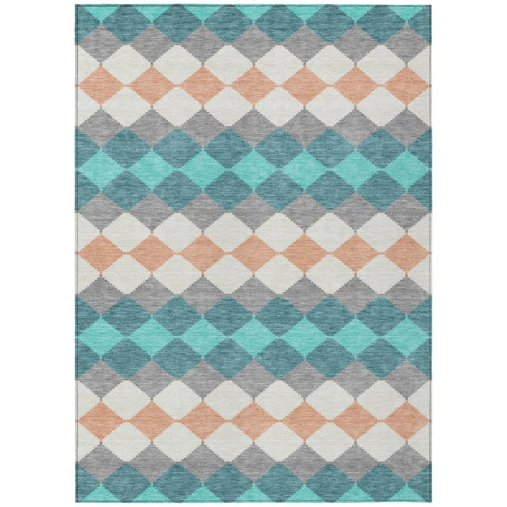 Eira Teal Washable Rug UV Stabilized For Indoor-Outdoor Features: