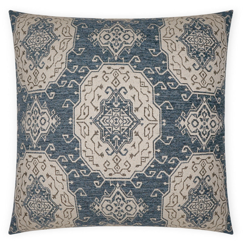 The Elaine Pillow is a lovely addition to any room, bringing a touch of calm with its slate blue front and blue back. Made from soft polyester, it has a removable cover for easy cleaning. Inside, the pillow is filled with a mix of 95% feather and 5% down, offering both comfort and support. Crafted in California, each piece is hand cut and sewn to order, showcasing fine craftsmanship. A hidden zipper keeps the design sleek and tidy. This pillow's global style and intricate geometric patterns add a stylish touch to your space, making it perfect for any setting.