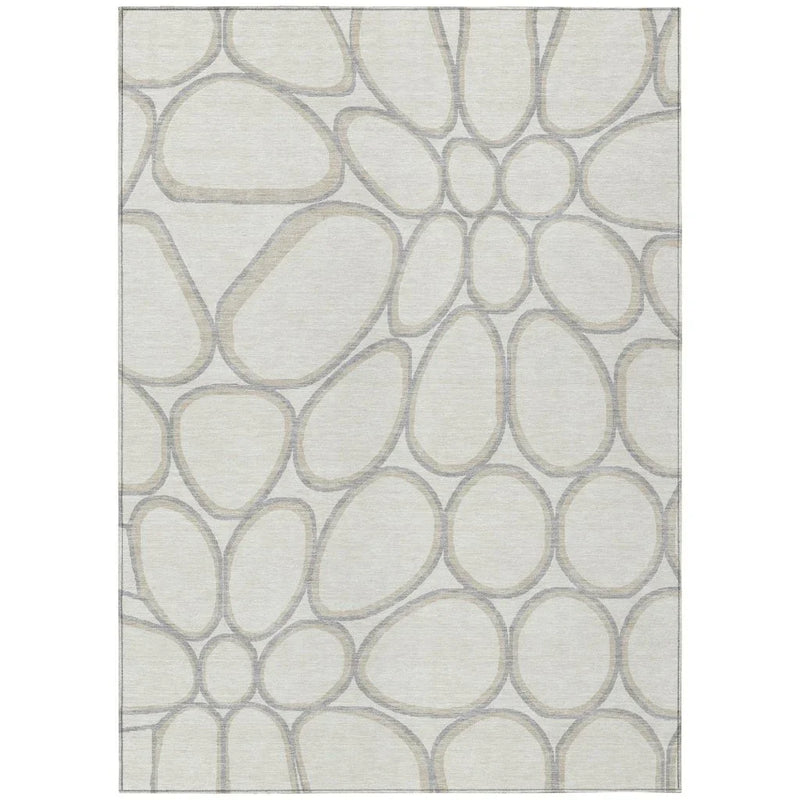 Enhance your living spaces with this elegant rug. Its stone-shaped circles form an intricate pattern, adding a touch of sophistication to any room. This rug is practical and versatile, designed for both indoor and outdoor use. It features a UV-stabilized surface, ensuring it maintains its vibrant look even in areas with sunlight exposure. The ultra-thin design makes it easy to fit under furniture and allows for quick drying, making it perfect for outdoor settings or busy households.