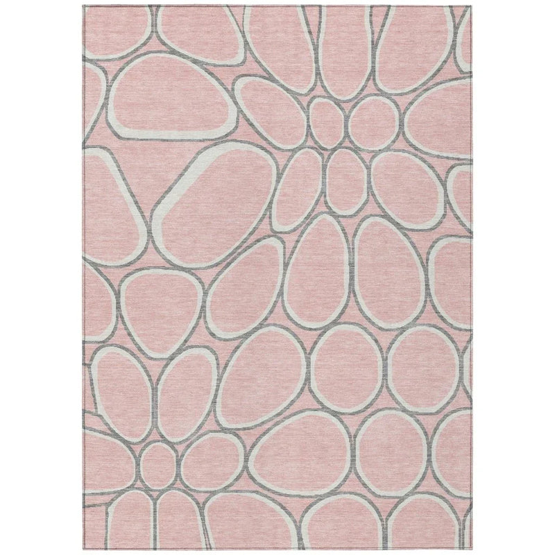 Enhance your living space with this beautiful pink rug that combines style and practicality. The intricate path pattern, made up of stone-shaped circles, adds a unique and eye-catching design to your floors. This rug is perfect for both indoor and outdoor settings, thanks to its UV stabilized feature that protects it from fading under sunlight. Its machine-washable quality ensures easy maintenance, making it ideal for busy households with pets and children. The rug's ultra-thin profile not only contributes to its elegant appearance but also allows for quick drying, whether it's from rainfall or a routine clean.
