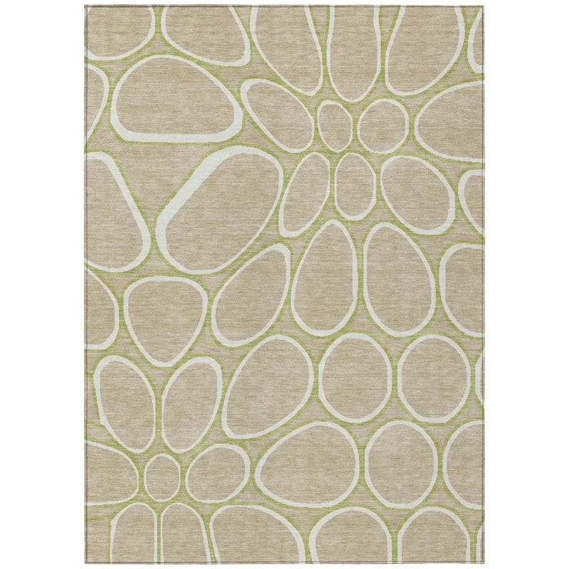 Enhance your living space with the Elantra Tan Washable Indoor-Outdoor Rug, a perfect blend of style and practicality. Its unique design features stone-shaped circles that form an intricate path pattern, bringing a stunning transitional look to any area. Ideal for both indoor and outdoor settings, this rug is UV stabilized to withstand various environments while maintaining its vibrant appearance. The soft tan color complements a wide range of decor styles, making it a versatile choice for any home.