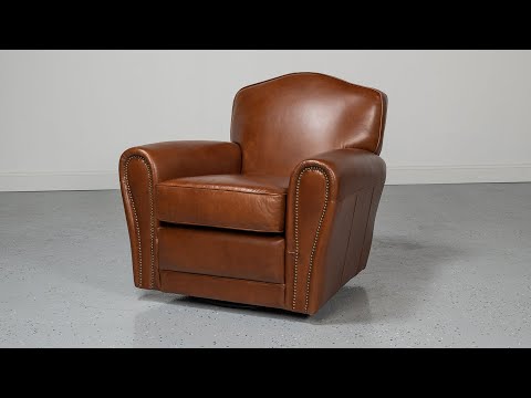 Enhance your decor with the Elite French Club Swivel Chair in a stunning brown hue. Combining style and functionality, this chair boasts a Vintage Havana Leather upholstery and a swivel base, making it a standout piece. Made from top grain cow Leather and metal, it exudes luxury and durability. Experience the ultimate blend of timeless sophistication and practicality with the Elite French Club Swivel Chair. Elevate your space with this opulent chair wrapped in vintage Havana Leather and featuring a sturdy swivel base. Enjoy the lasting comfort and elegant design of top grain cow Leather and metal construction.