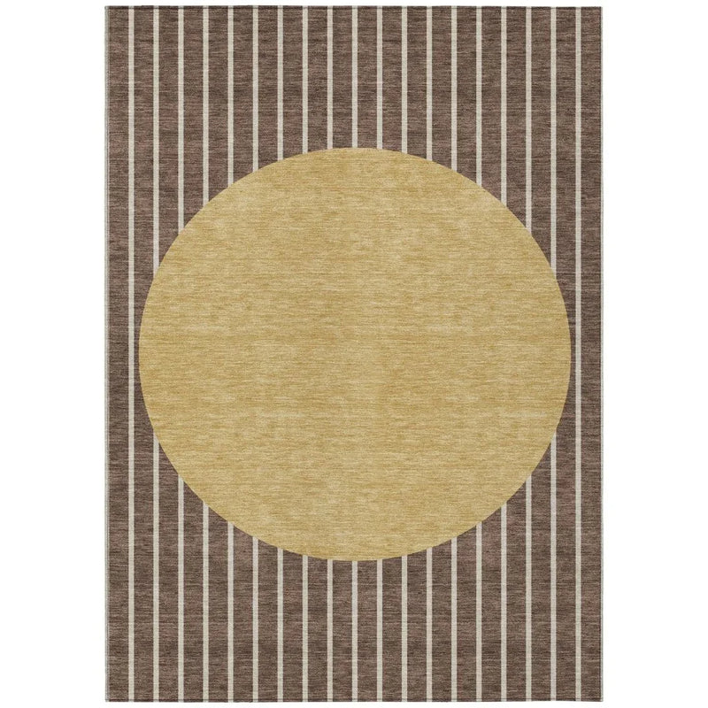 Enhance your living space with a touch of elegance using this stylish area rug. Its sleek vertical stripes and a striking large circle in the center make it a unique addition to both indoor and outdoor settings. The design not only adds sophistication but also serves as a focal point in any room. Made from durable polyester, this rug is UV stabilized to maintain its vibrant color and pattern, even when exposed to the elements. Its ultra-thin construction ensures it won't add unnecessary bulk underfoot, providing a smooth and comfortable surface.