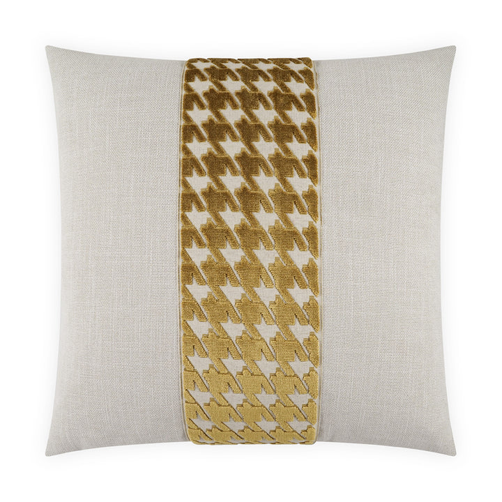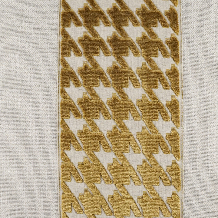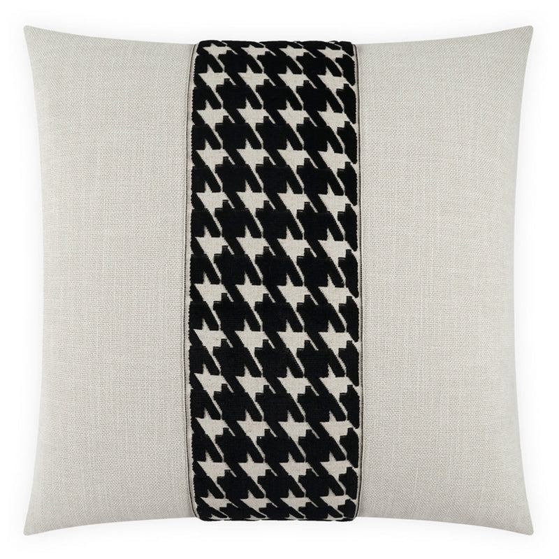 Bring cozy elegance and style to your home with the Ennis Pillow, available in Jet, Kiwi, and Midas. Each handcrafted pillow features a central houndstooth stripe in black, green, or mustard yellow on a soft light beige 100% polyester base. The removable cover and insert with a hidden zipper make cleaning effortless, and it also offers plush comfort with a 95% feather and 5% down fill. Hand-cut and sewn in California, every pillow is unique. Perfect for sofas, beds, or accent chairs, the Ennis Pillow combines traditional charm with modern flair and luxurious support.