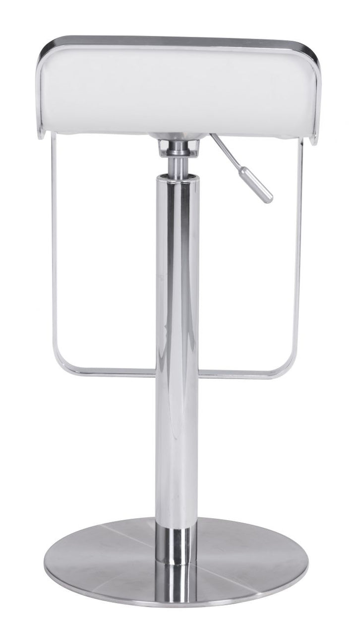 The Equino Barstool offers a blend of comfort and style with its modern design. It features sleek black and white colors, making it a perfect addition to any kitchen or bar area. The stool has a slight lip back and a flat seat, providing support and ease during use. The seat is made from 100% polyurethane faux leather that is easy to clean. It includes a chrome-plated steel frame and a stainless steel base for durability. With an adjustable lift, it moves smoothly from counter height to bar height. Its compact size makes it a great fit for small spaces.