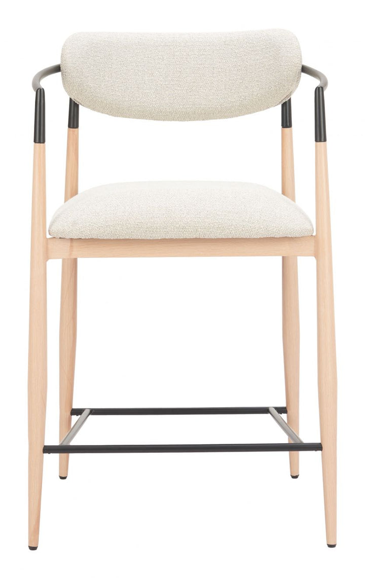 The Equinox Counter Stool in Oyster Grey and Natural finish is perfect for those who love modern style. This stool features a sleek design with a mix of premium textured 100% polyester fabric, powder coated steel, and faux wood steel. Its elegant look fits well in any space, making it ideal for both home and hospitality settings. The stool is made with care, ensuring durability and comfort. Its armless design allows for easy movement and versatility. Whether for a kitchen counter or a stylish bar area, this stool promises both style and function.
