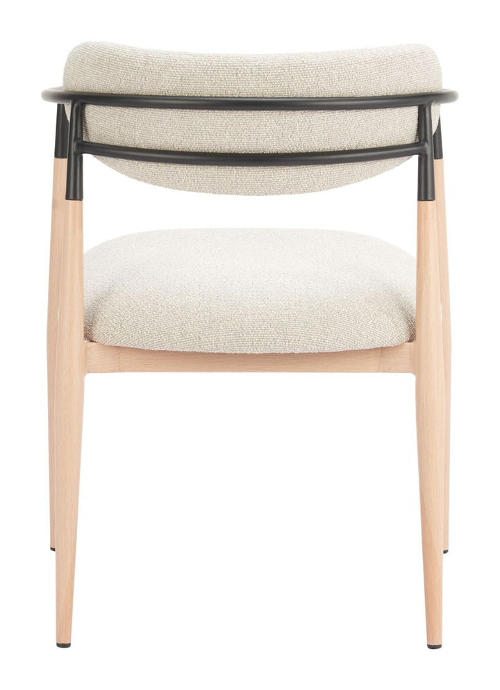 The Equinox Dining Chair in Oyster Grey & Natural finish offers a sleek modern look, making it a great choice for hospitality settings or your dining area. Made with premium textured 100% polyester fabric, this chair ensures comfort and style. The powder-coated steel and faux wood steel construction add durability and a contemporary touch. Its design fits seamlessly into any space, combining elegance with functionality. With no assembly needed, you can enjoy the chair right out of the box. Its thoughtful design and quality materials make it a standout piece that will enhance any room.
