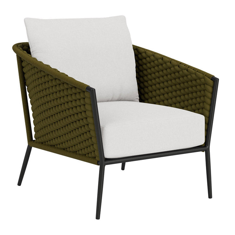 The Escape Lounge Chair features a striking spruce green knitted fabric woven in a honeycomb pattern, adding a touch of nature-inspired beauty to your outdoor oasis. The all-aluminum frame, with a matte charcoal finish, offers exceptional strength with a touch of simple elegance. Seat cushions are made with a core of foam for structure and longevity, wrapped with polyester layered fill for plush comfort and completely encased in a moisture resistant fabric for low maintenance in outdoor settings. Lloyd Flanders furniture is manufactured overseas, with all cushioning made in the USA. Its aluminium frames are designed to resist expansion and contraction during weather changes, ensuring years of low-maintenance outdoor use.