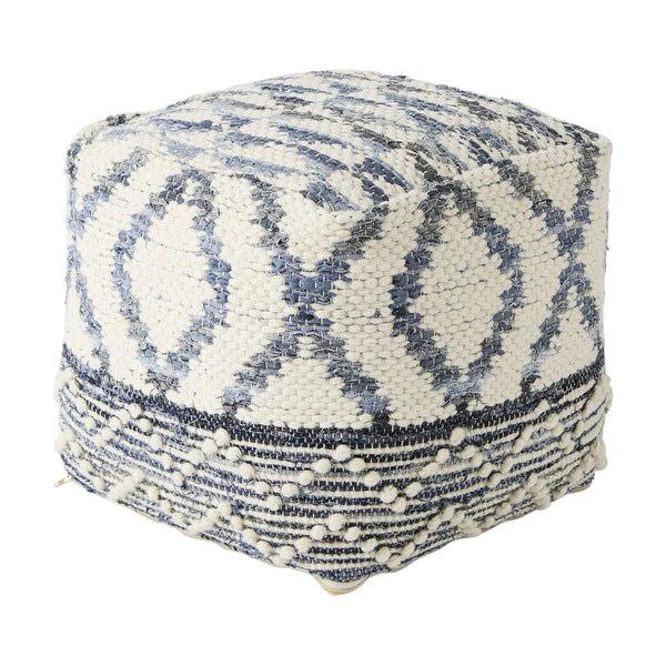 Denim, wool, and cotton blend together in the Eshana pouf, creating a comfy and sturdy piece for your home. Its delightful cream and blue finish, along with unique textured patterns, makes it a standout accessory. This pouf is ideal for homes that embrace a coastal design, but it can also introduce a tropical vibe to various styles. Measuring a handy 16 by 16 inches, it fits easily into any room. Whether you're looking for an extra seat, a footrest, or just a splash of pattern, this pouf is a great choice that combines style and function.