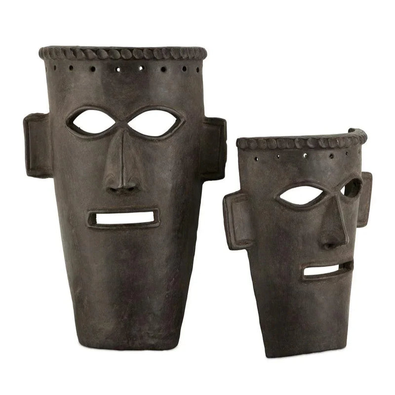 Bring a touch of history to your living or working space with the Etu Black Mask Set of 2 and its unique, hand-rubbed clay pieces that evoke a medieval era atmosphere. The natural clay lends an aged look to these conversation starters and the set includes two black masks, each with a hand-rubbed finish, giving them an authentic medieval feel. Don't miss out on the opportunity to elevate your modern decor with these artisanal and thought-provoking black masks.