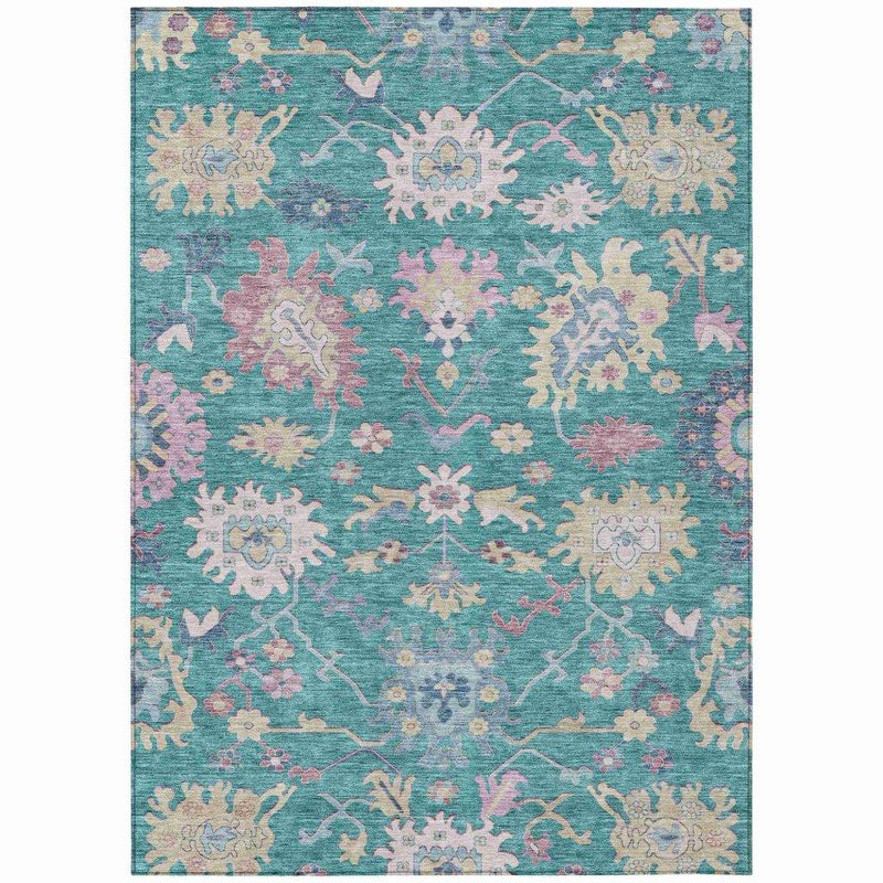 Eugene Teal Washable Rug UV Stabilized Stain Resistant Features:
