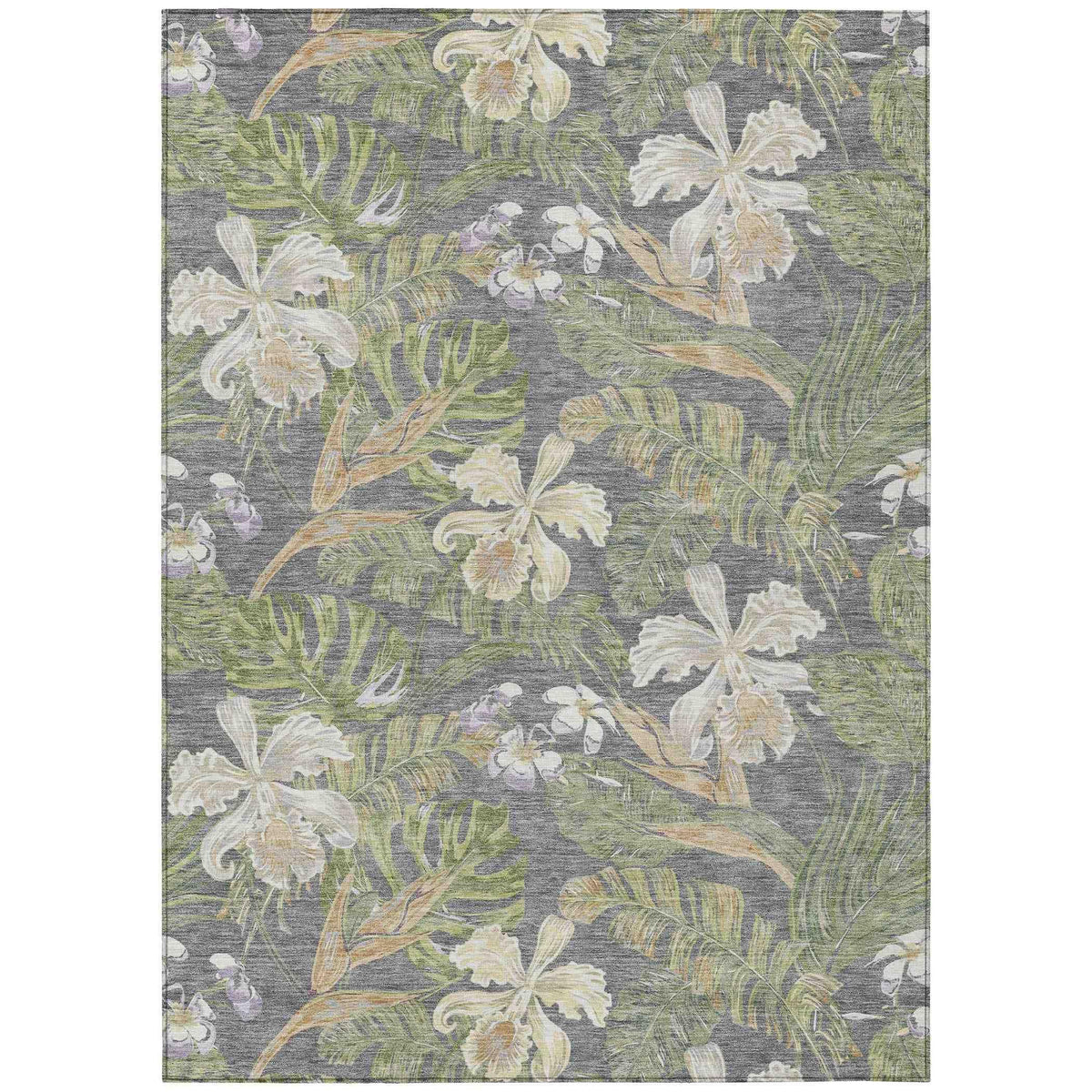 Introducing a touch of elegance and exotic flair to your home, the Faereth Gray Washable Rug features a captivating tropical leaf and palm motif. This floral pattern brings a burst of nature-inspired design to any space, transitioning seamlessly into various interior styles. With its vibrant look, it adds a stylish and relaxing ambiance to your living area. The gray color palette complements a wide range of decor, making it a versatile choice for any room.