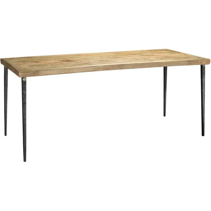 Bring a balance of rustic warmth and modern elegance to your dining space with this 72" Farmhouse Style Dining Table. Crafted with hand-worked mango wood tops, available in dark stained or natural waxed finishes, each piece highlights the organic character of the wood. The hammered antique iron or antique silver legs add refined contrast, blending durability with sophistication. Perfect for both everyday dining and entertaining, this table embodies farmhouse charm with a contemporary touch, making it a versatile centerpiece for a variety of interior styles.