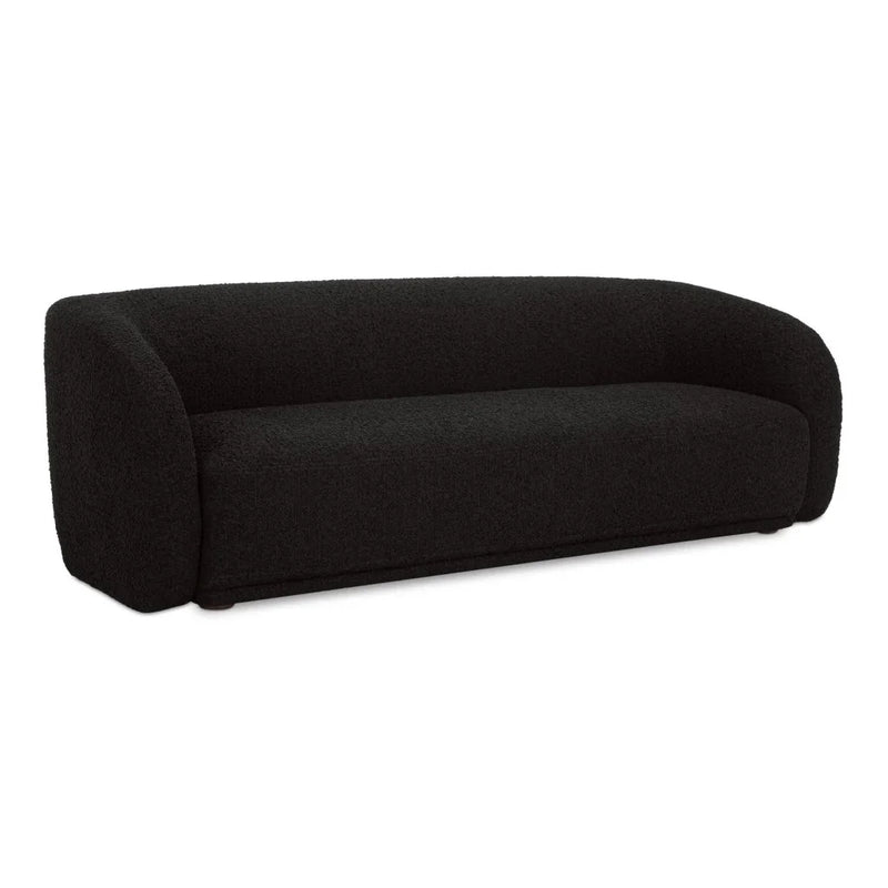 The Faye Sofa combines vintage-inspired charm with contemporary elegance, making it a stunning centerpiece for any living space. Featuring a gracefully curved back and a firm, fixed bench seat, this sofa offers both visual appeal and lasting comfort. Upholstered in your choice of three premium finishes—exaggerated black or beige boucle made from a 90% polyester and 10% acrylic blend, or plush tan faux mohair crafted from 100% polyester—each version provides a unique texture that enhances the overall aesthetic. Petite, rounded rubberwood legs and an art deco influence complete the look with understated sophistication. Constructed with a solid beech and plywood frame, the Faye Sofa is built for durability and everyday use.