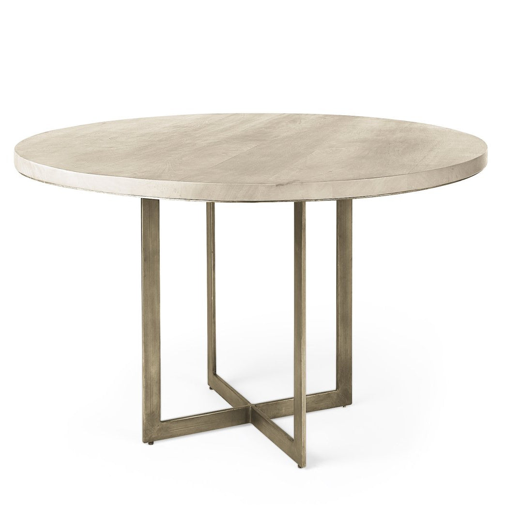 Solid wood brings both strength and beauty to the Faye Round Dining Table, which blends modern simplicity with classic elegance. The table's 48-inch round top is crafted from mango wood, showcasing a smooth beige finish with gray undertones that highlight its natural character. This sits atop a crisscross iron base with an antique gold finish, adding a touch of glam to any dining space. The combination of these materials means you get a durable piece that’s also stylish. Another thing you will like is how well it pairs with other pieces from the Faye range, making it a perfect choice for those who appreciate subtle sophistication.