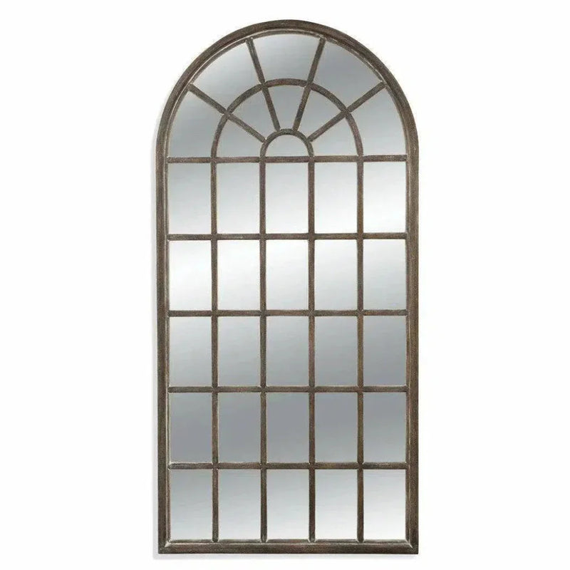 Reminiscent of an antique window, this mirror seamlessly enhances any room in your home with a hint of rustic charm. With graceful ease, our Berwyn Leaner captures the allure of a vintage window, infusing your space with warmth and character. Its weathered panels and arched design bring a touch of rustic tradition to your decor, making it the perfect addition to your collection of premium pieces.