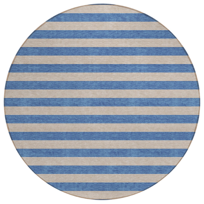 Enhance any room with this versatile area rug featuring thick horizontal lines in two colors for a striking look. Its transitional style makes it an easy fit for both indoor and outdoor settings. Crafted from 100% polyester, this rug is UV-stabilized to resist fading, allowing it to withstand outdoor elements while still maintaining its beauty. The ultra-thin profile with non-skid backing ensures it stays in place, eliminating the need for an extra rug pad. Designed with convenience in mind, it's machine-washable and perfect for families with kids and pets. This rug is a practical choice that adds a touch of style to any space.