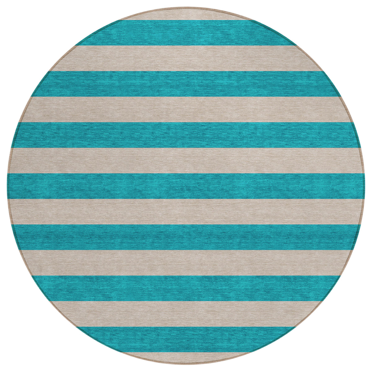 The Fluid Mirage Turquoise Washable Rug brings a blend of style and practicality to your home. Its striking horizontal thick lines in turquoise add a modern touch to any room or outdoor space. Made from 100% polyester, this rug is both durable and soft underfoot. It features UV stabilization, making it ideal for both indoor and outdoor use, withstanding sunlight without losing its vibrant color. The ultra-thin design has a non-skid backing, ensuring it stays in place without needing an extra rug pad. Plus, it’s machine-washable, making it a family and pet-friendly choice for easy cleaning.