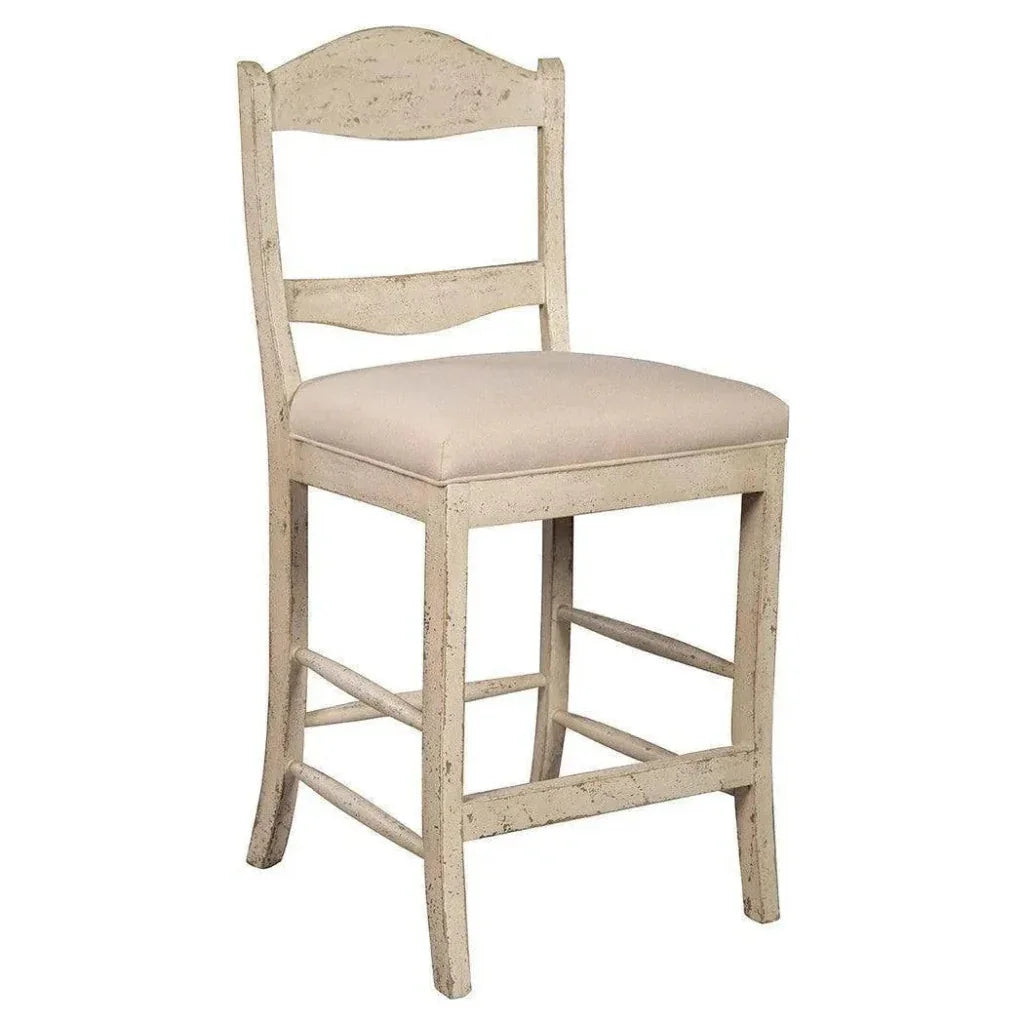 The simplified curvy lines of this oak ladder back stool is an updated version of a timeless favorite. The legs are slightly curved, and the sides and back are strengthened by the use of turned stretchers. You can rest your tootsies on the sturdy foot rest. Neutral, linen-like performance fabric covers the comfy seat, making this stool a logical choice for family and friends! Revamp your seating with this modern twist on a classic design!