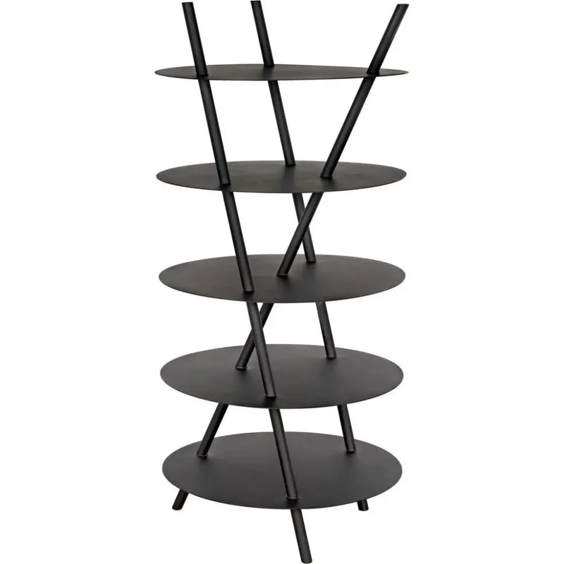 Introducing the Gautama Shelf - a perfect blend of art and function. Crafted with inspiration from ancient architecture, our monolithic bookcases feature a sleek matte black finish. With its minimalistic design, this shelf adds a touch of elegance to any space. Organize and display your belongings with style. Suggestive of ancient aqueducts and classic arches, our monolithic bookcases in minimally finished matte black metal are equal parts sculpture and functional display. Expertly crafted with inspiration from ancient architecture, our monolithic bookcases feature a sleek matte black finish. These timeless pieces serve as both a work of art and a practical storage solution.