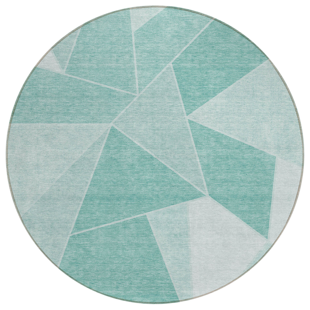 Step into a world of style with this teal rug that boasts a striking geometric pattern. The mix of triangles and straight edges is sure to catch the eye, making it a perfect addition to both modern and classic spaces. Made from 100% polyester, this rug is UV stabilized, so it can be used both indoors and outdoors without losing its vibrant color. Its ultra-thin design includes a non-skid backing, which means no extra rug pad is needed. Plus, it's machine washable, making it a great choice for families and pet owners who want a hassle-free, durable rug.