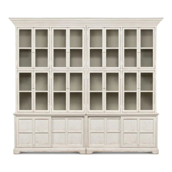 Step into a world of literary beauty with the Glass Front Bookcase. Expertly crafted from pristine pine and painted in an elegant antique white, this majestic structure stands tall at 121"x22"x106" and promises timeless charm. More than just a piece of furniture, it is a symbol of timeless design. The transparent glass doors invite viewers into the shelves within. With eight fixed and two adjustable shelves, it offers versatility for displaying your prized collectibles or extensive book collection.
