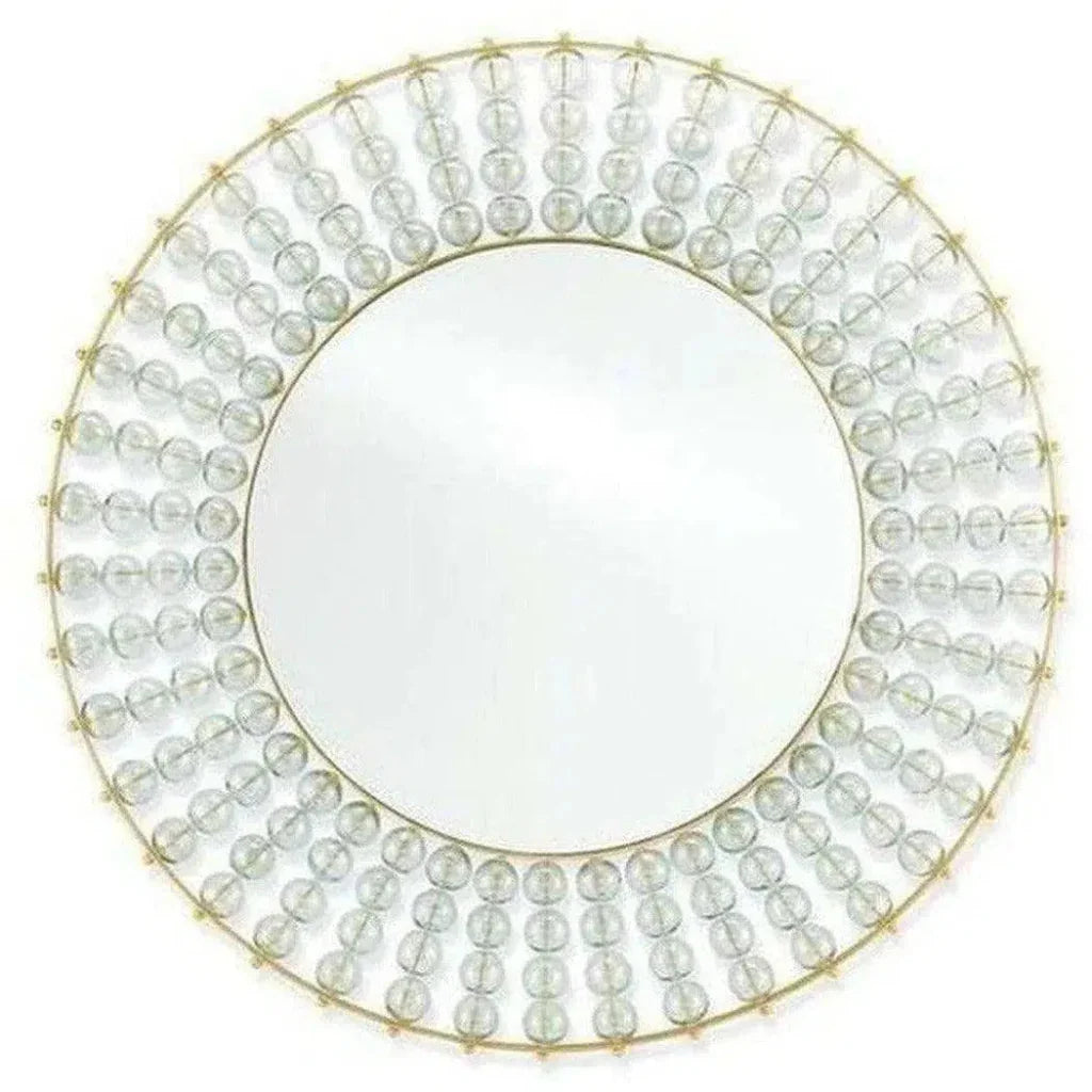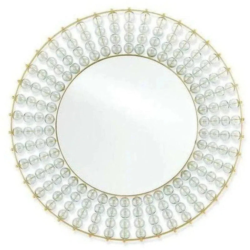 Our Calais Round Mirror was named for a town that is known for its lace, which makes the open-weave artistry we have achieved on this decorative mirror a fitting tribute. Threaded between the metal rings in a gold leaf finish, the hollow recycled glass balls make this glass mirror glint.