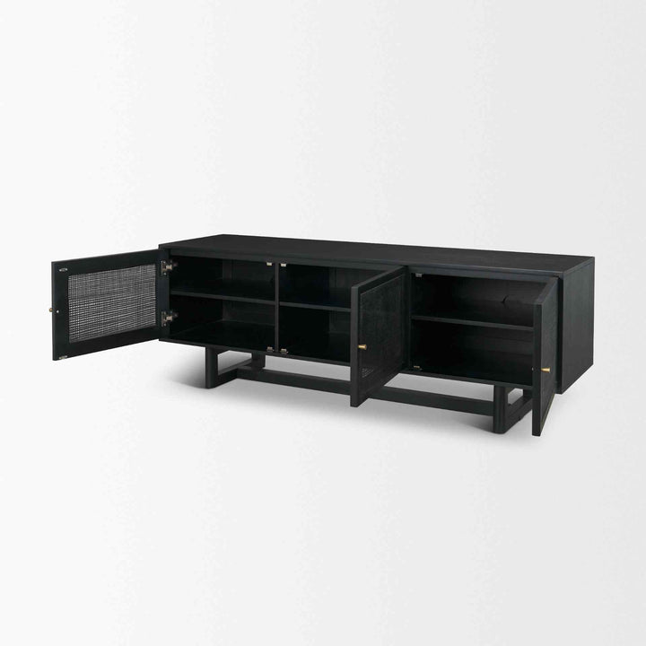 Grier 65" Black Wood Media Console With Cane Finish Features: