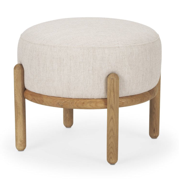 Gwynn Beige Fabric Pouf With Light Brown Wood Base Features: