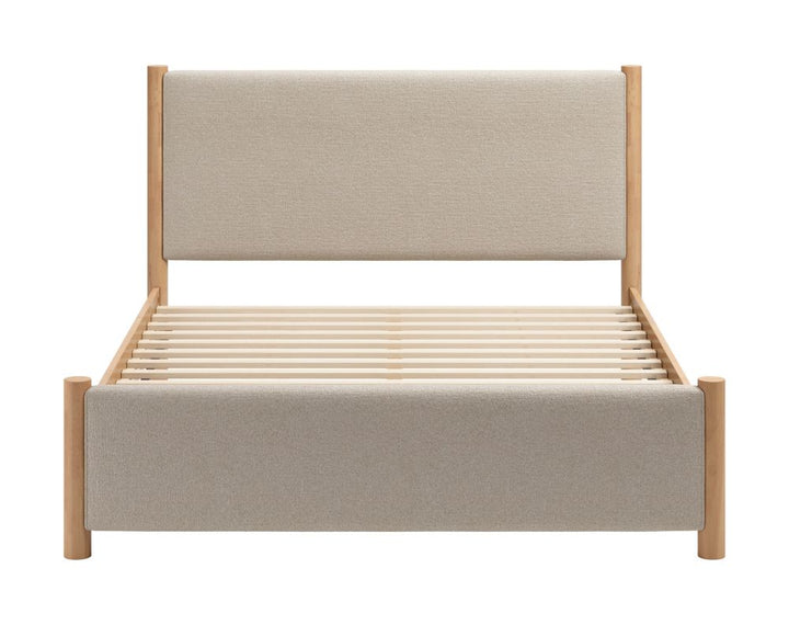 The Hadi King-Queen Bed in Beige is a beautiful blend of style and function, perfect for any modern bedroom. It is made from high-quality Polyester fabric, MDF, and Plywood, ensuring durability and comfort. The bed's contemporary design in a beige and natural color palette adds a touch of elegance to your space, making it a standout piece that complements a variety of decor styles. Its construction provides a sturdy and supportive frame for a restful night's sleep. Designed to be both practical and chic, this bed requires assembly but promises to be a worthwhile addition to your home.