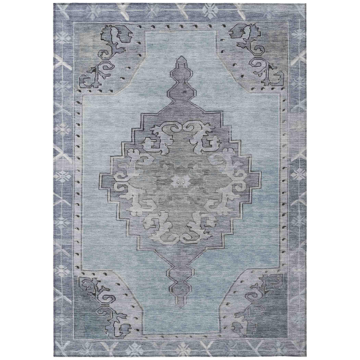 Enhance your home with a rug that combines style and practicality. The Haelion Sky Washable Indoor-Outdoor Rug features a medallion design that sits in the center, surrounded by a detailed border, adding visual interest to any room. This traditional rug with a global pattern brings a touch of culture and elegance to your living space. Perfect for larger areas, its balanced design creates a harmonious atmosphere. Crafted for both indoor and outdoor use, it is UV-stabilized to withstand sunlight, although it performs best in shaded areas.