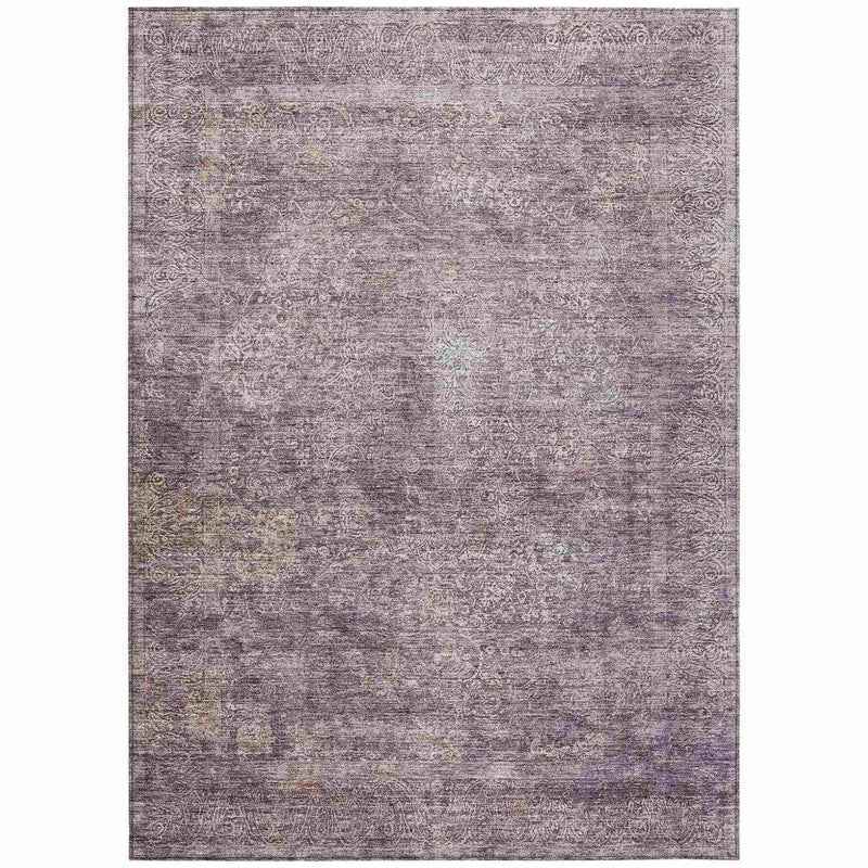 Transform your living area with a touch of elegance using this versatile purple rug. The Halora Purple Washable Rug seamlessly blends into any setting with its classic border design and intricate global patterns. Made from durable polyester, it's crafted to withstand both indoor and outdoor environments. Its UV stabilization ensures color longevity, even when used in sunlit spaces. The ultra-thin build and non-skid backing make it a practical choice, allowing it to fit effortlessly under furniture without causing any slips or trips.