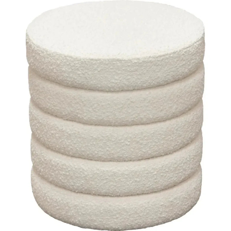 Helix Round Accent Ottoman in Ivory Boucle fabric Features: