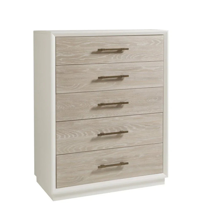 Upgrade your living space with the Panama Jack Boca Grande Five Drawer Chest, part of the brand's contemporary collection. Boasting clean lines, a high gloss finish, and wire-brushed oak veneers, this chest offers a refined and casual aesthetic. Designed with quality and value in mind, it's the perfect addition to any modern lifestyle. The Boca Grande collection captures the essence of contemporary style, with its clean lines, high gloss finish, and wire-brushed oak veneers featured throughout.