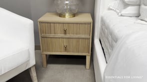 Transform your bedroom into a sophisticated haven with the Highland 2-Drawer Nightstand by Essentials For Living. Meticulously crafted from solid oak wood and oak veneer, this nightstand boasts a natural oak finish that effortlessly complements any home decor. Delicate fluted detailing on the drawers adds depth and texture, while brushed brass iron knobs provide a touch of classic elegance. The top drawer, lined with soft felt, safely stores your most precious belongings, and the dual metal drawer glides ensure smooth operation. With its compact dimensions of 23" wide, 17" deep, and 24" high, this nightstand is both functional and visually stunning. Immerse yourself in the luxurious essence of transitional design with this timeless piece.