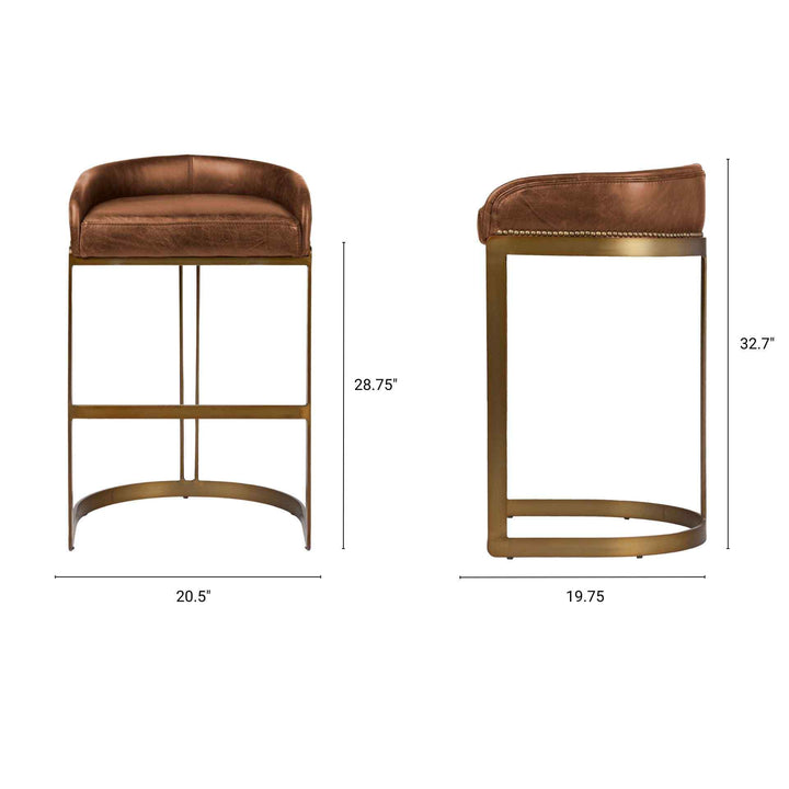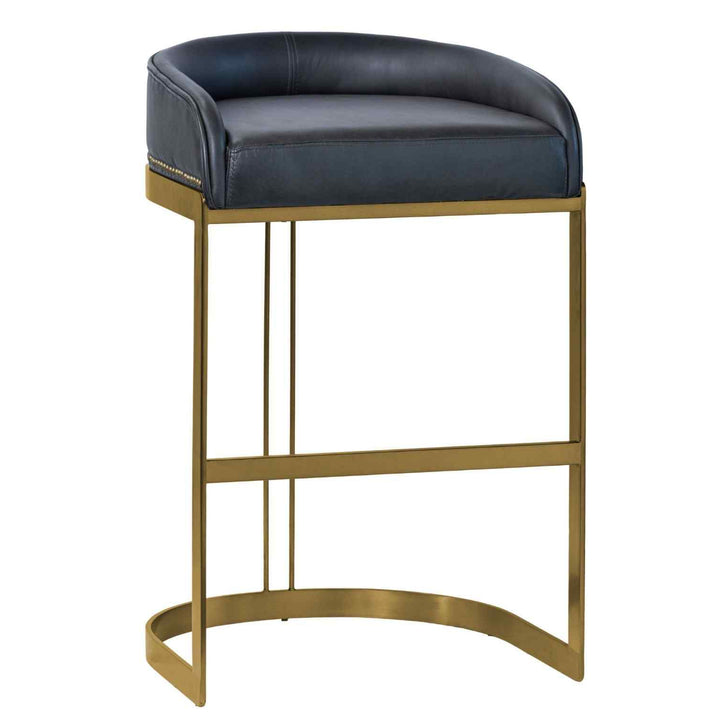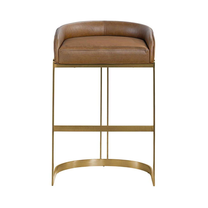 The Hollyfield Leather-Fabric Gold Base Bar Stool brings style and comfort to your bar or kitchen. This bar stool has leather-fabric seat that is both stylish and cozy. The leather-fabric seat sits on a sturdy metal frame with an antiqued-gold finish, adding a touch of elegance to any space. The stool is designed with a low-back for a sleek look that fits well in modern settings. Its solid metal construction offers excellent stability, making it a reliable choice for everyday use. Plus, it comes fully assembled, so you can start using it right away. Perfect for those who love both style and practicality.