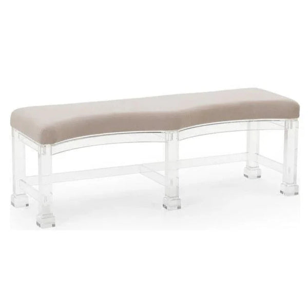 Enhance any space with a touch of elegance and modern simplicity with this bench. Crafted from clear acrylic, this bench offers a sleek and sophisticated look that seamlessly complements any décor. The transparent design creates an illusion of more space, making it an ideal addition to smaller rooms. Its clean lines and minimalist style fit effortlessly into various settings, from contemporary to traditional, adding a hint of Hollywood glamour to your home. The bench features a muslin-covered seat, providing comfort and versatility. The seat is designed for easy care, allowing you to recover it with your own fabric to match your personal style or update your décor. This feature makes the bench not only stylish but also practical, offering a customizable seating solution that can adapt over time.