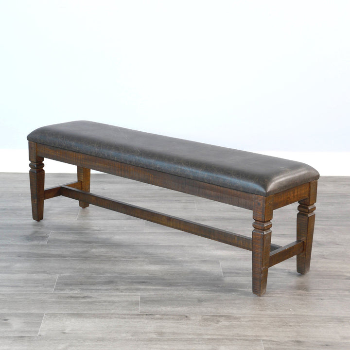 The cushioned bench from Homestead Hills is a blend of style and comfort. Its sturdy mahogany frame is built to last, with a rich finish that brings warmth to any room. The bench features a backless design, making it versatile for various spaces. It boasts a vinyl cushion seat that is not only comfortable but also easy to clean, keeping it looking fresh even in busy households. The detailed leg design adds an elegant touch, enhancing the overall aesthetic appeal. Perfect for dining areas, this bench fits seamlessly into transitional-style interiors while offering practical seating solutions.