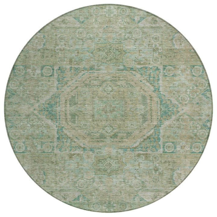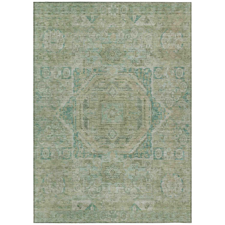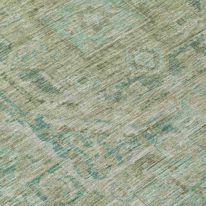 Showcasing a grand center medallion surrounded by meticulous motifs, this rug draws inspiration from global patterns to create a rich, textured design. The intricate detailing complements the boldness of the medallion, adding a refined touch to any space. Its traditional style and global pattern offer an elegant fusion of classic and international elements. The green color adds vibrancy, making it a stunning centerpiece for any room or outdoor area.